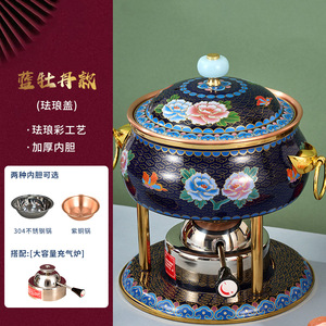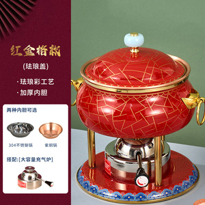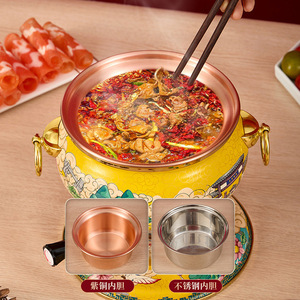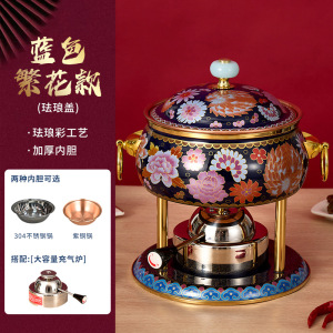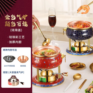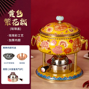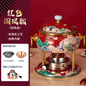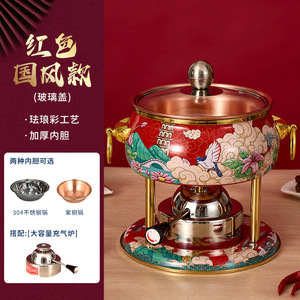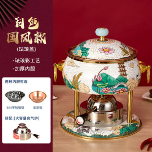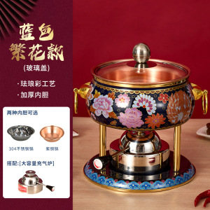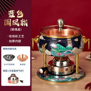 珐琅彩单人小火锅一人一锅充气铜火锅酒精炉家用商用户外便携铜锅