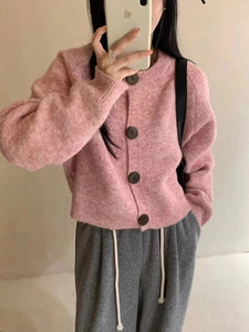 韩系小个子软糯薄外套女秋2025新款高级感宽松百搭大纽扣开衫上衣