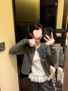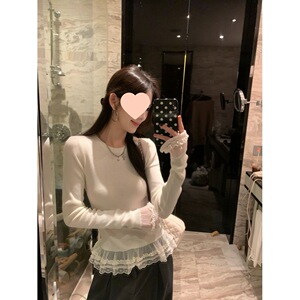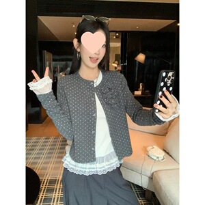 2025秋季新款韩系设计感高级感百搭波点荷叶边拼接蕾丝长袖外套女