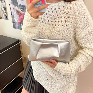 韩版时尚晚宴小包包女2025新款褶皱质感小方包简约甜美通勤手拿包
