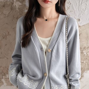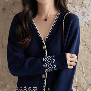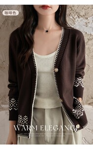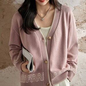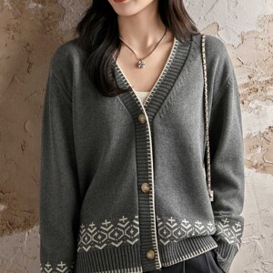 法式费尔岛提花针织开女外套2025新100纯棉针织宽松加厚外搭毛衣