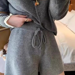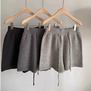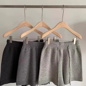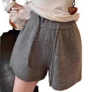 高腰宽松阔腿针织短裤女秋冬加厚基础款松紧腰A字廓形灰色休闲裤