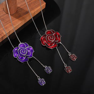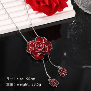 高级感玫瑰可调节毛衣链大气时尚百搭 秋冬新款长款项链 厂家直销