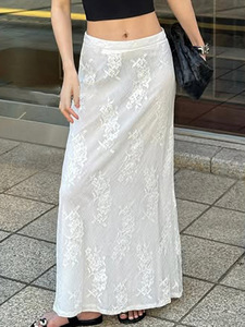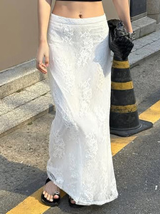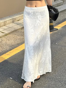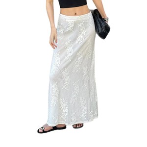 欧美设计感蕾丝拼接直筒半身裙跨境新款高腰显瘦网纱包臀长裙女