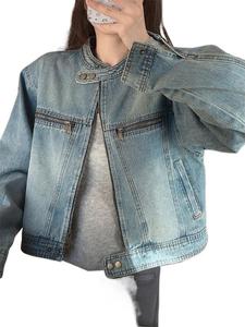 机车酷飒牛仔外套女夏季2025新款宽松显瘦时尚水洗休闲拉链上衣潮