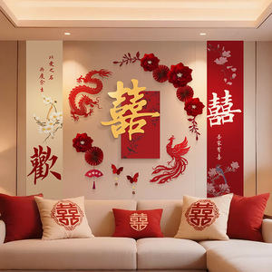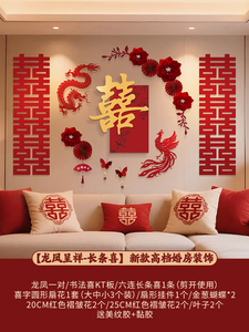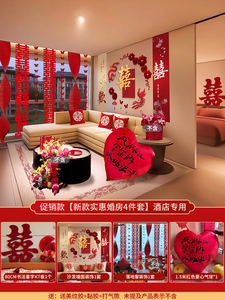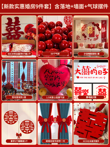 婚房布置套装男女方结婚卧室新房客厅沙发背景墙喜字拉花装饰婚礼