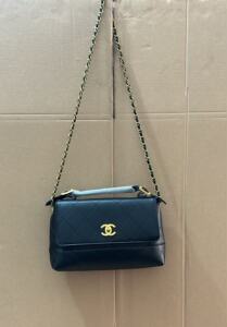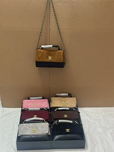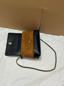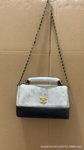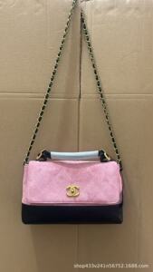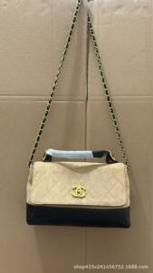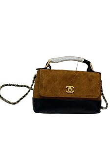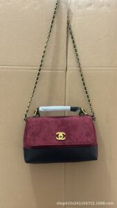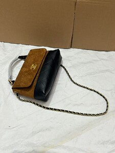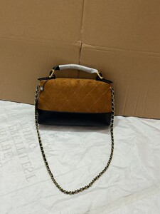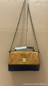 ChaneI25秋冬新款麂皮拼色复古时尚单品大容量菱格手提通勤链条包