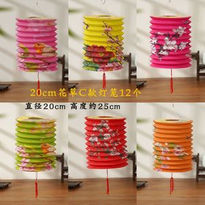 中秋节传统纸灯笼挂饰春节风琴折叠儿童手提中国风led发光小花灯