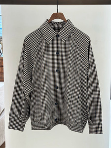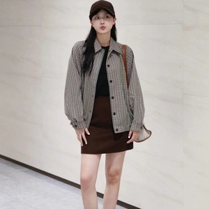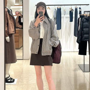 HE系女装 羊毛微弹斜纹布细格翻领夹克外套女 2025年秋季通勤上衣
