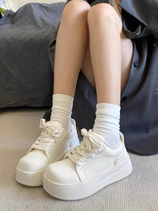 软皮版~顾茜茜同款真皮面包鞋2025百搭厚底时尚潮流休闲小白鞋运