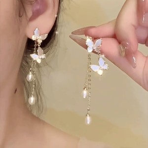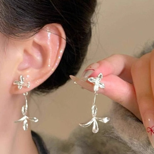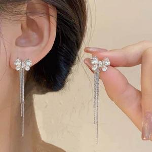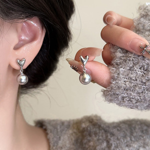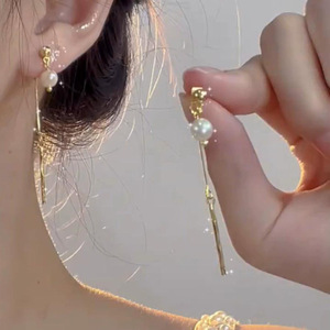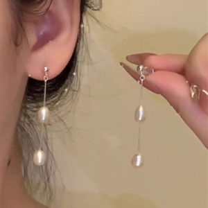 韩系珍珠流苏耳夹女新款轻奢秋冬温柔耳环无耳洞气质银色豆豆耳饰