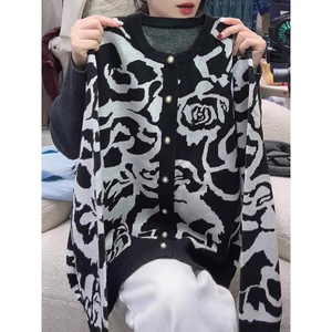 广州十三行2025年春季新款时尚显瘦提花毛衣针织开衫外套百搭上衣