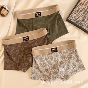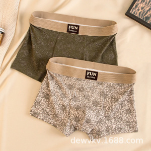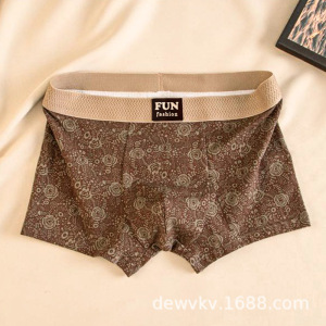 新款男士爆款古典花印国风内裤平角裤亲肤透气四角裤头男生短裤衩