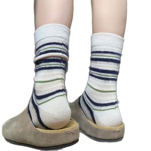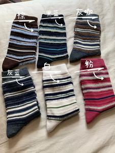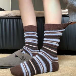 袜子女秋冬时髦撞色毛茸茸拼接条纹袜复古甜美彩色少女中筒堆堆袜