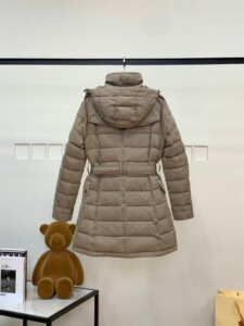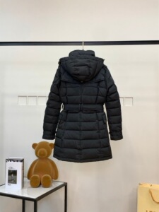 25款秋冬新款外贸批发连帽双排扣收腰显瘦中长款女式厚羽绒服