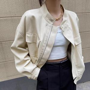 春秋季新品韩版立领帅气PU皮夹克口袋机车好品质短款皮衣外套女