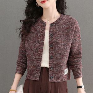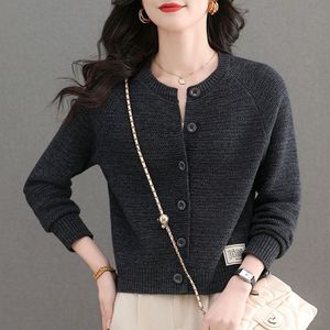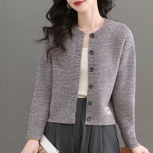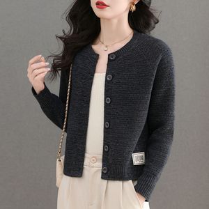 鸿2751短款花纱羊毛针织开衫女圆领小个子减龄遮肉时尚毛衣外套