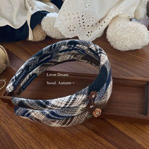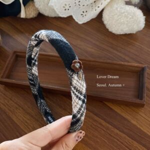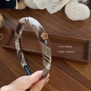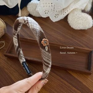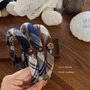 韩国秋冬新款植绒花朵格子毛呢发箍 复古时尚高级感头箍头饰发饰