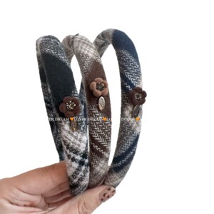 1.5CM咖色条纹 卡其色花朵 毛呢布艺发箍