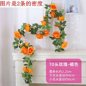 玫瑰假花藤条吊篮秋千拱门装饰假花空调管道遮丑装饰塑料花藤