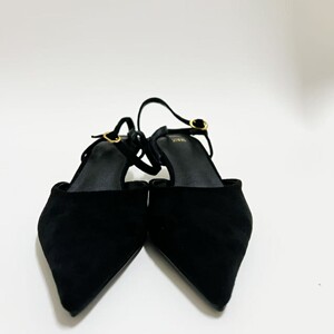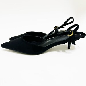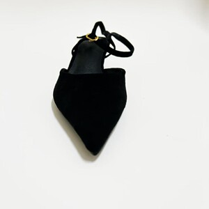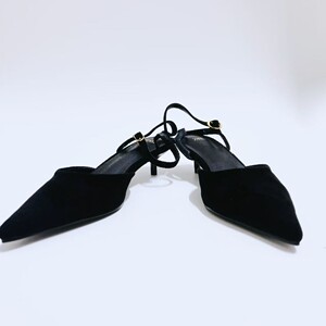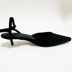 ZAR25高跟凉鞋黑色尖头绒面猫跟一字带露跟穆勒鞋包欧美风尖头