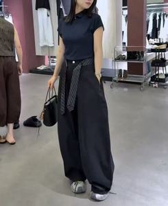 25909新大爱美依缘2025新款polo领短袖t恤高腰休闲阔腿裤显瘦洋气