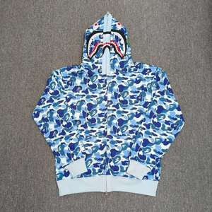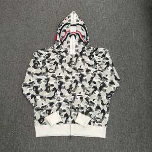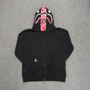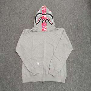 跨境ins超火外贸鲨鱼头双帽黑粉卫衣男女开衫拉链潮牌情侣外套