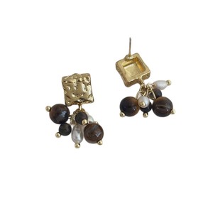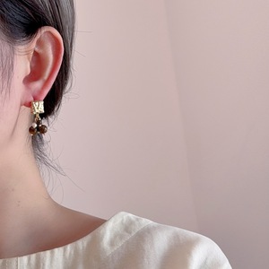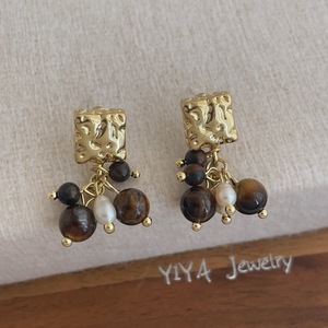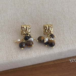 复古虎眼石串珠耳环女珍珠时尚复古精致耳钉耳环女小众个性耳饰品