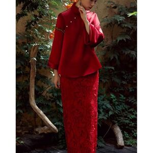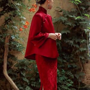 红色中国风轻奢旗袍敬酒2025新娘结婚礼服订婚连衣裙长袖