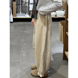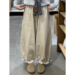 孕妇棕色阔腿花苞工装裤子女秋新款大码女装胖mm九分灯笼休闲裤