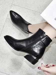 2025新款软皮时装靴粗跟秋冬季加绒中跟鞋软皮圆头时装靴女棉皮鞋