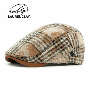 秋季新款帽子男士前进帽欧美风扎染格纹贝雷帽女潮英伦复古鸭舌帽