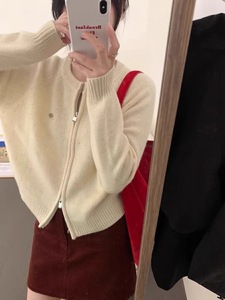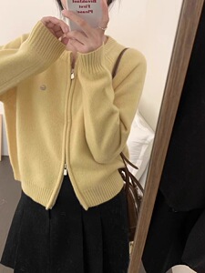 2025秋冬新款拉链开衫女100羊毛衫女欧货厚款短款羊绒毛衣外套