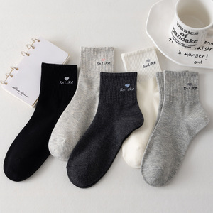 女中筒袜简约时尚ins风潮袜棉袜透气吸汗黑色袜子休闲百搭女长袜
