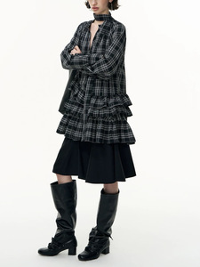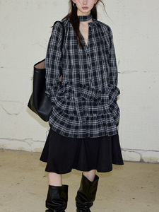 【自由生长】格纹荷叶边连衣裙女休闲百搭长袖衬衫裙