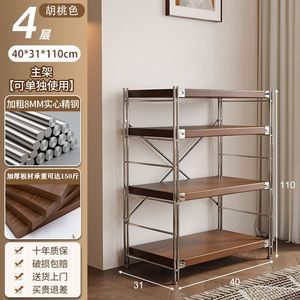 日式置物架钢木收纳架落地客厅阳台多层整理架厨房微波炉储物架子