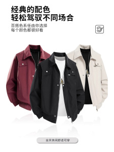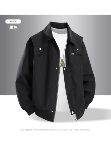 1699美式百搭翻领飞行员春秋季男士夹克春秋新款纯色外套休闲宽松
