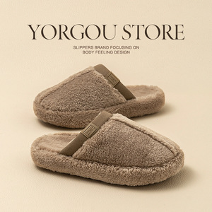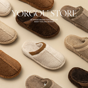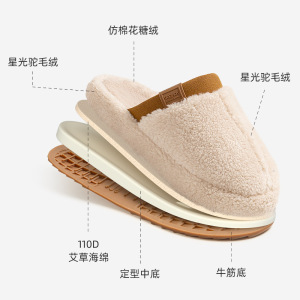 远港艾草毛绒拖鞋女2025秋冬季居家室内防滑保暖冬天家居棉拖鞋男