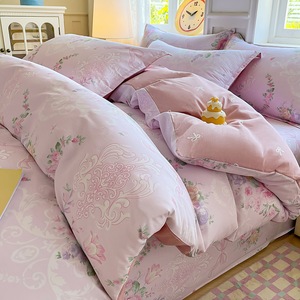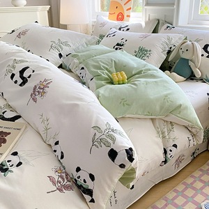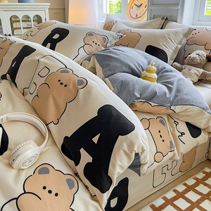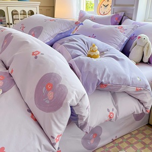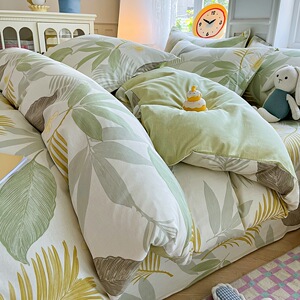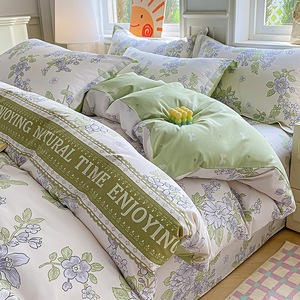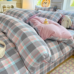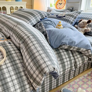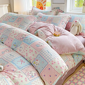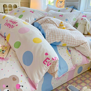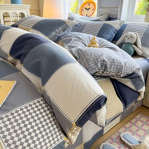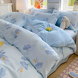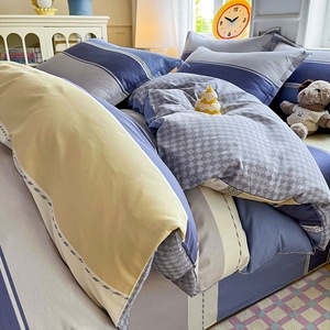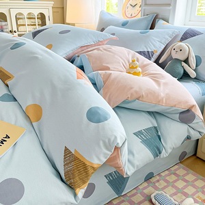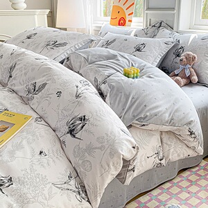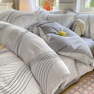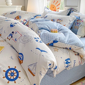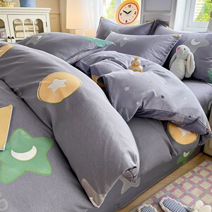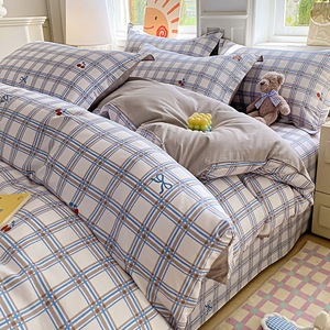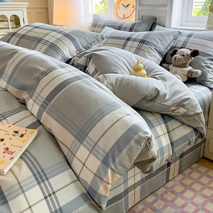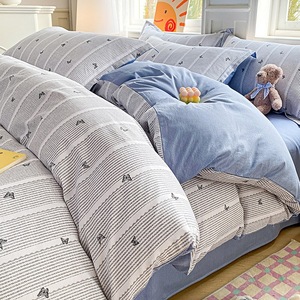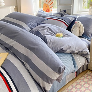 水星家纺全棉四件套100%纯棉被套单双人被罩学生宿舍床笠式三件套
