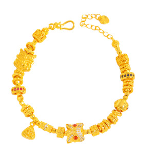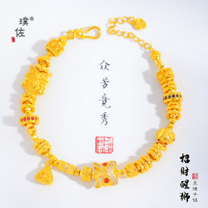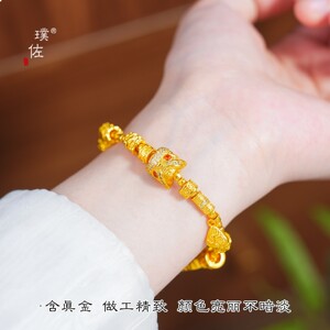 璞佐金店同款沙金镶钻醒狮盘缠手链女新中式高级感手串中秋送女友