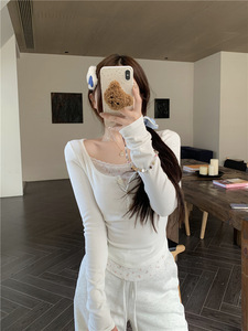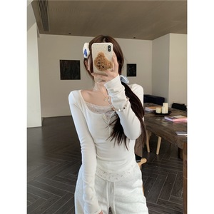 实拍~奶里奶气碎花假两件上衣加绒打底衫女休闲百搭纯欲T恤88616