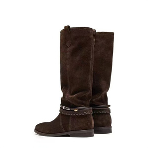 商场同款2025冬新款复古西部靴牛仔靴长筒靴高筒靴女靴子
