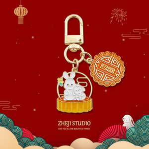 中秋月饼兔钥匙扣节日手作小礼物送朋友家人员工团员包包挂件配饰