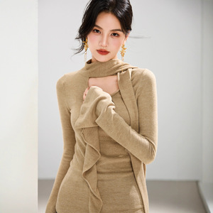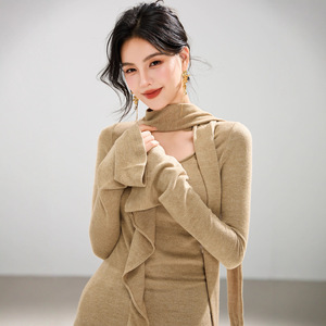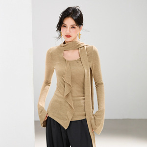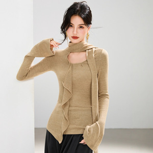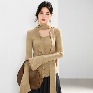 G1965设计感飘带V领针织衫女秋季新款简约百搭慵懒上衣喇叭袖温柔