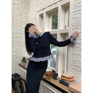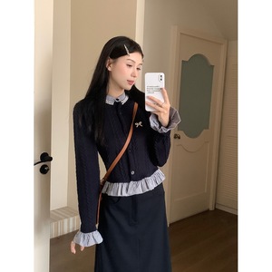 条纹拼接法式气质长袖针织开衫长款半身裙女秋季2025新款时尚套装