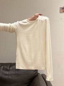韩系燕麦圆领2025秋季新款长袖T恤内搭打底衫修身慵懒气质上衣女