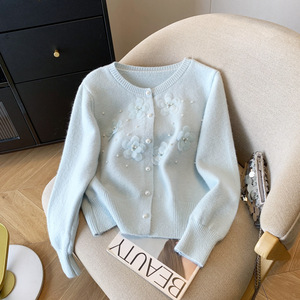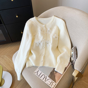 甜美减龄重工立体花朵软糯毛衣开衫女外套秋冬新款感针织上衣2025