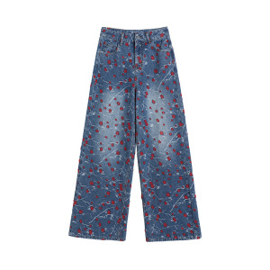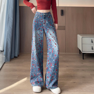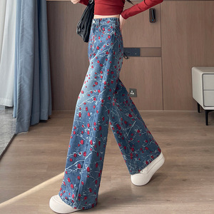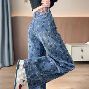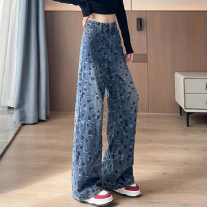 重工提花阔腿牛仔裤女2025新款高腰显瘦宽松设计感垂感直筒拖地裤