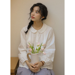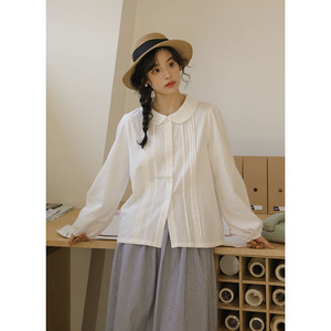 实拍 2025秋季新款文艺日系简约娃娃领清新宽松衬衫上衣女88641