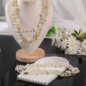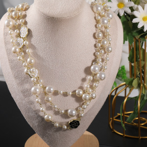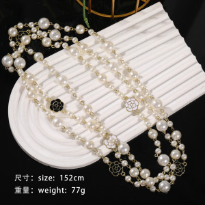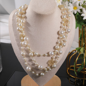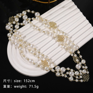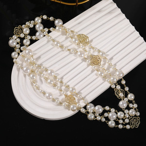 加长款秋冬毛衣链 玫瑰花珍珠链 时尚镂空花朵多层缠绕珍珠款项链